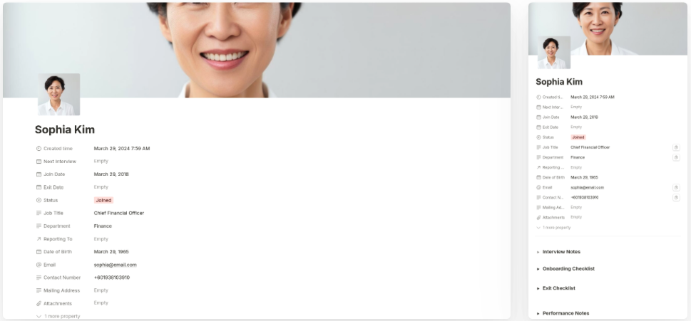 Ideal for keeping track of the recruitment process, onboarding process, and employee profile